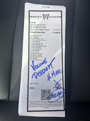 This 2025 Rocky Ridge Silverado comes in a Riptide Blue Metallic exterior, with a 6-inch Suspension Lift System, FOX 2.0 Rear Shocks, as well as 20- inch Rocky Ridge Wheels. Interior consists of All Weather Floor Mats, Factory Leather Seat Covers, and a Center Console Storage Safe.6.2L ECOTEC3 V8 (420 hp [313 kW] @ 5600 rpm, 460 lb-ft of torque [624 Nm] @ 4100 rpm); featuring Dynamic Fuel Management that enables the engine to operate in 17 different patterns between 2 and 8 cylinders, depending on demand, to optimize power delivery and efficiency, Z71 OFF-ROAD PACKAGE includes (Z71) Off-Road suspension, (JHD) Hill Descent Control, (NZZ) skid plates and (K47) heavy-duty air filter Includes Z71 hard badge, (N10) dual exhaust, (RCV) 18" bright silver painted wheels, (XCK) 265/65R18 all-terrain, blackwall tires and (NQH) 2-speed transfer case. CONVENIENCE PACKAGE II includes (UG1) Universal Home Remote, (A48) rear sliding power window, (PZ8) Hitch Guidance with Hitch View and (UET) Trailering App Includes (UQA) Bose Premium Sound System.), SAFETY PACKAGE includes (UV2) HD Surround Vision, (UD5) Front and Rear Park Assist, (TRG) Trailer Camera Provisions, (UKV) Trailer Side Blind Zone Alert, (UFB) Rear Cross Traffic Braking, (UKK) Rear Pedestrian Alert and (U12) Perimeter Lighting, SUNROOF, POWER on Crew Cab models, PROTECTION PACKAGE includes (B1J) wheel house liners and (CGN) Chevytec spray-on bedliner, FRONT BUCKET with center console (Includes (EPH) Electronic Transmission Range Selector (console mounted). AUDIO SYSTEM, CHEVROLET INFOTAINMENT 3 PREMIUM SYSTEM with Google built-in compatibility (select service plan required, terms and limitations apply) including navigation capability, 13.4" diagonal HD color touchscreen, includes multi-touch display, AM/FM stereo, Bluetooth® streaming audio for music and most phones; featuring Wireless Apple CarPlay® and Wireless Android Auto® capability for compatible phones, advanced voice recognition, in-vehicle apps, personalized profiles for infotainment and vehicle settings (STD), 10-SPEED AUTOMATIC with Electronic Transmission Range Selector, (ETRS), electronically controlled with overdrive, tow/haul mode and steering column paddle shifters. Includes Cruise Grade Braking and Powertrain Grade Braking.Keyless Entry, Privacy Glass, Steering Wheel Controls, Alarm, Heated Mirrors.